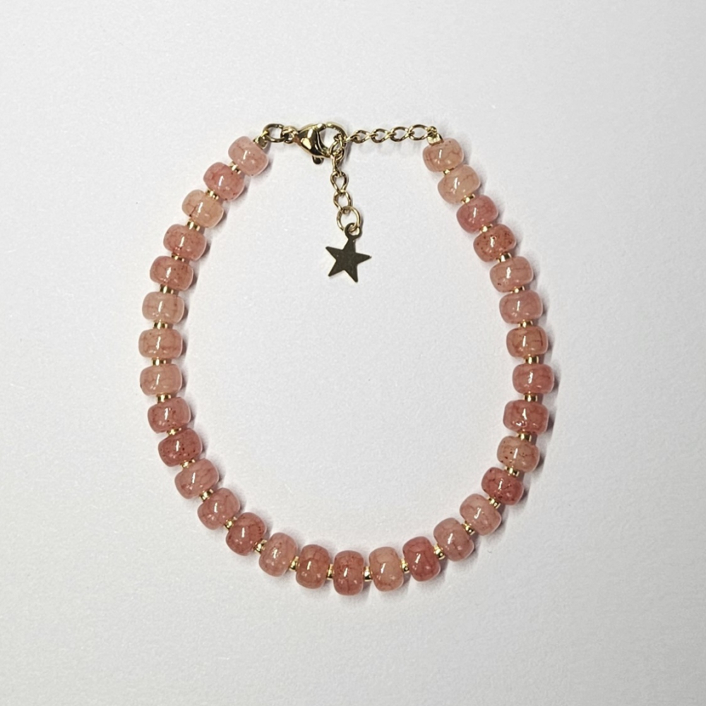 Armband van natuurstenen met roestvrijstalen sluiting.
