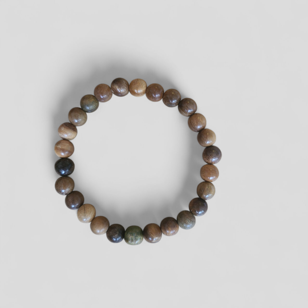 Let op! De armband is gemaakt van Houtkralen. De glans van deze kralen kan vervagen door contact met de huid en water.
